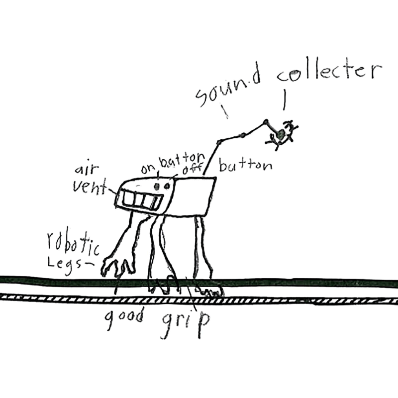 I had a video call with Eben and we chatted about why he designed the Sound Collector. It is to help astronauts when they are on the moon or planets to collect sounds easier. I showed Eben a picture of the next Mars lander as I found out they are adding microphone for the first time. We talked about how it would look and how big the robot should be - about the size of a small dog and it should be metal and grey.